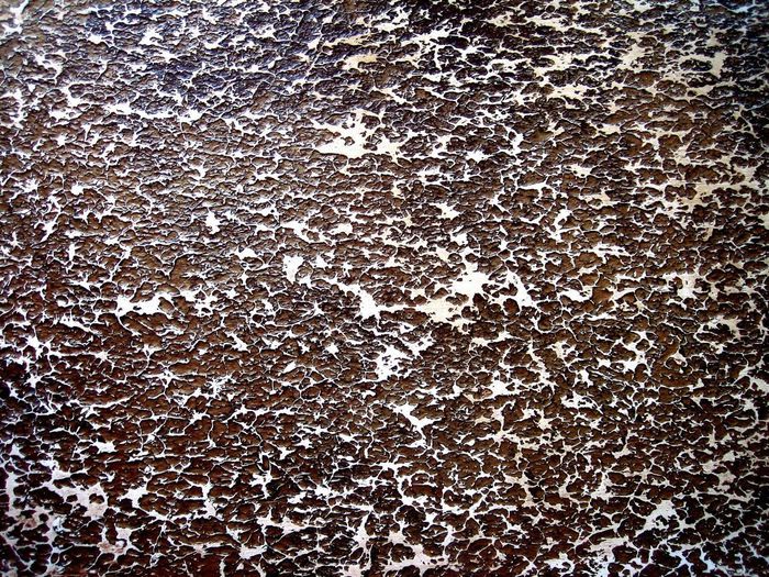 Un effet similaire est créé en raison du vernis craquelé appliqué sur la chape, qui se fissure sous l'influence d'additifs provoquant ce processus.