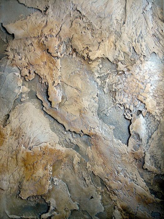 En conséquence, un tel effet ne peut être obtenu qu'en utilisant une composition spécifiquement orientée vers lui. Voici plusieurs options de texture de plâtre avec un effet similaire. De véritables fissures se forment dans le revêtement craquelé. Mais en option, ils peuvent être, comme dans l'image ci-dessus, dessinés avec un pinceau fin, une peinture contrastée.