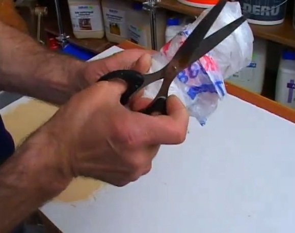 - Un rouleau inhabituel pour le plâtre texturé est obtenu en attachant un sac en plastique froissé, un filet de légumes, une toile de jute avec du ruban adhésif.