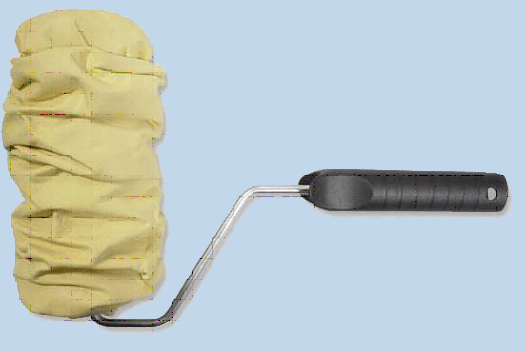 L'application de l'enduit décoratif au rouleau est simple: il est immergé dans la solution finie, d'abord roulé sur la surface auxiliaire pour une répartition homogène du mélange, puis sur le mur. Les mouvements doivent être fluides, avec une pression uniforme.
