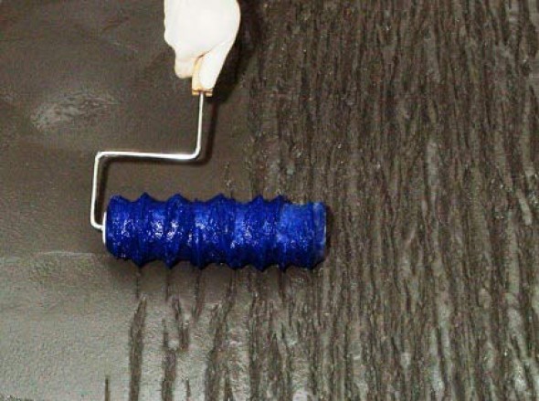 - Ils lui donnent une petite prise, car il est impossible de laisser une marque claire sur la solution liquide - elle adhérera au rouleau, s'encrassera dans les creux du relief. Dans le même temps, vous ne pouvez pas être trop lent, laissant la solution gagner en dureté. Par conséquent, il vaut mieux travailler ensemble: l'un met le plâtre, le second après lui donne une texture;