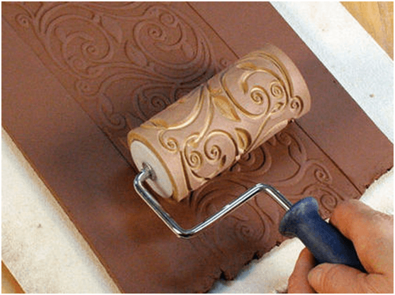 - Rouleau de plâtre en relief avec revêtement en caoutchouc dur ou en plastique et le relief enfoncé créera un motif convexe sur la surface du mur;