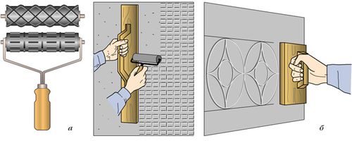 - Rouleau texturé (voir Rouleaux pour le plâtrage décoratif et la création d'une surface en relief).