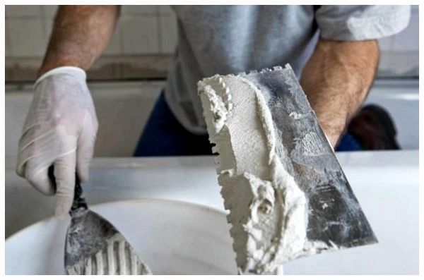 - S'il y a beaucoup de fissures ou d'irrégularités sur la surface de travail, une couche plus épaisse de mastic doit être appliquée, et pour cela, la solution doit être assez épaisse.
