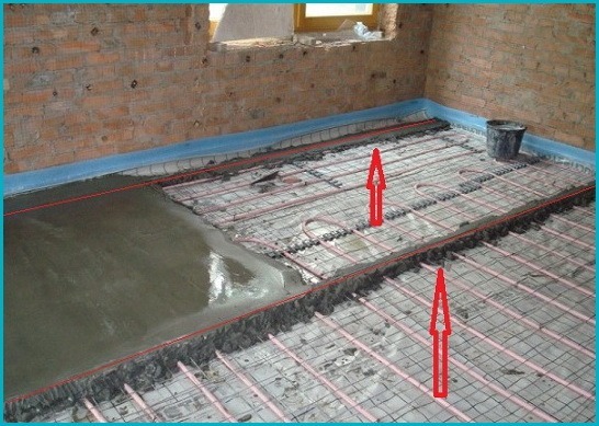 Important! Pour un sol chaud, ajoutez des chapes en basalte ou en polypropylène à la structure fibre de verreet pour une chape collée, appliquer une couche de contact avec une truelle crantée. Essayez de remplir en une seule fois.