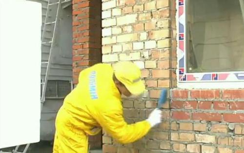 - Il arrive souvent que la surface s'effrite toujours, peu importe le nombre d'heures consacrées au nettoyage. Dans ce cas, ces actions doivent être arrêtées. Il est nécessaire de bien masticer ou d'enduire la façade avec l'ajout de colle PVA, en pulvérisant d'abord du mastic à partir du pistolet.