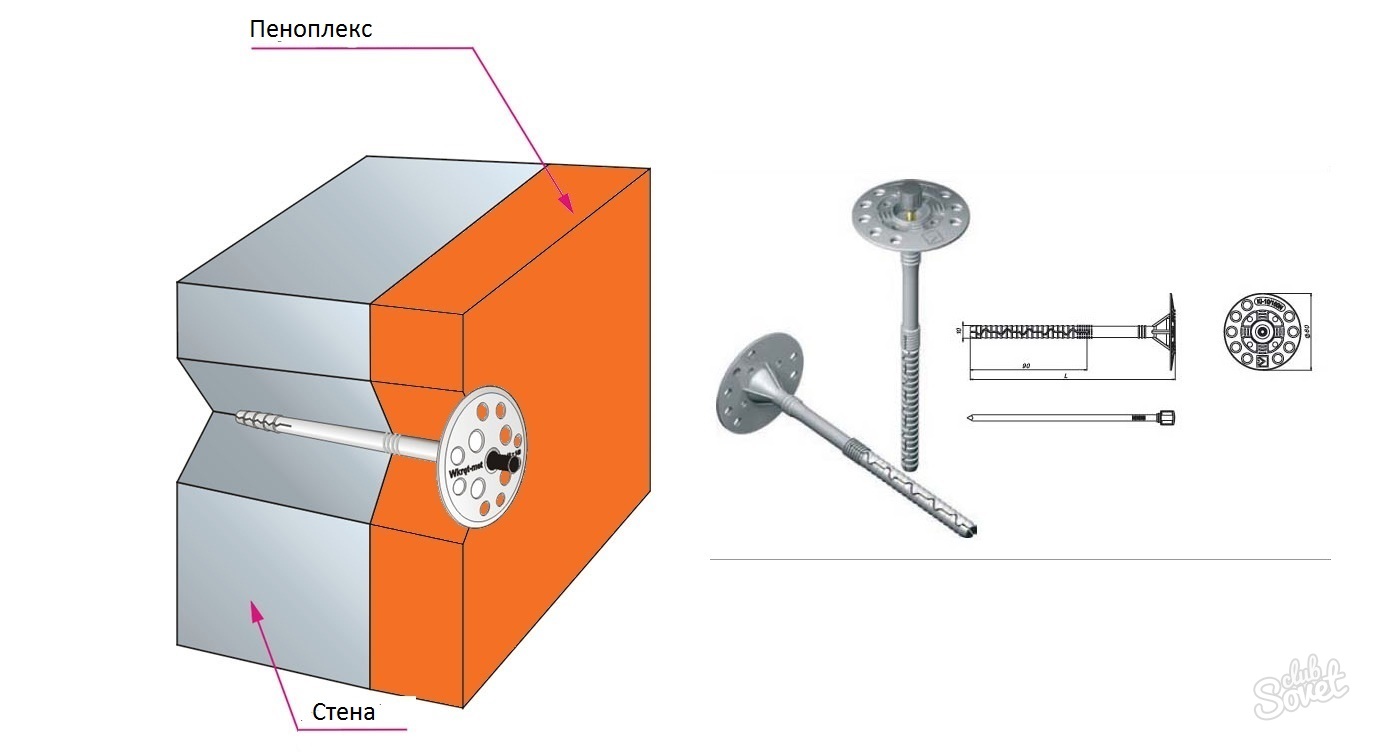 - La longueur du champignon est déterminée comme suit: calculez l'épaisseur du matériau isolant et ajoutez-y 1 cm (c'est l'épaisseur des couches restantes), puis ajoutez encore 4 à 5 cm du mur.