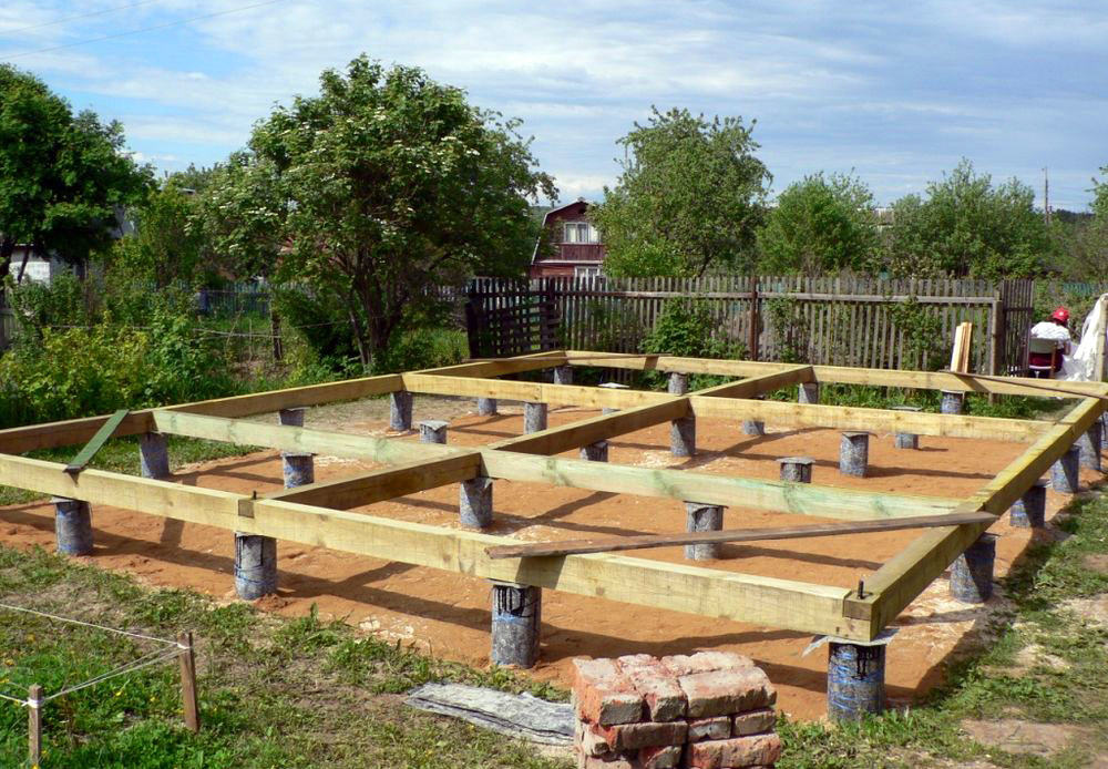 - La technologie pour réaliser une telle fondation ne diffère de la structure de support habituelle que par le fait qu'elle ne va pratiquement pas en profondeur. Une rainure peu profonde est découpée entre les piliers, dont le fond est compacté avec du sable et recouvert de feutre de toiture.
