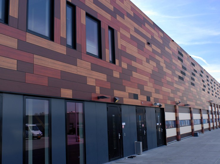 - De nombreuses variétés de panneaux composites, également utilisées pour les façades ventilées, ont les mêmes propriétés. Les panneaux décoratifs en bois pour le revêtement extérieur sont généralement recouverts d'une couche de polymère coloré.