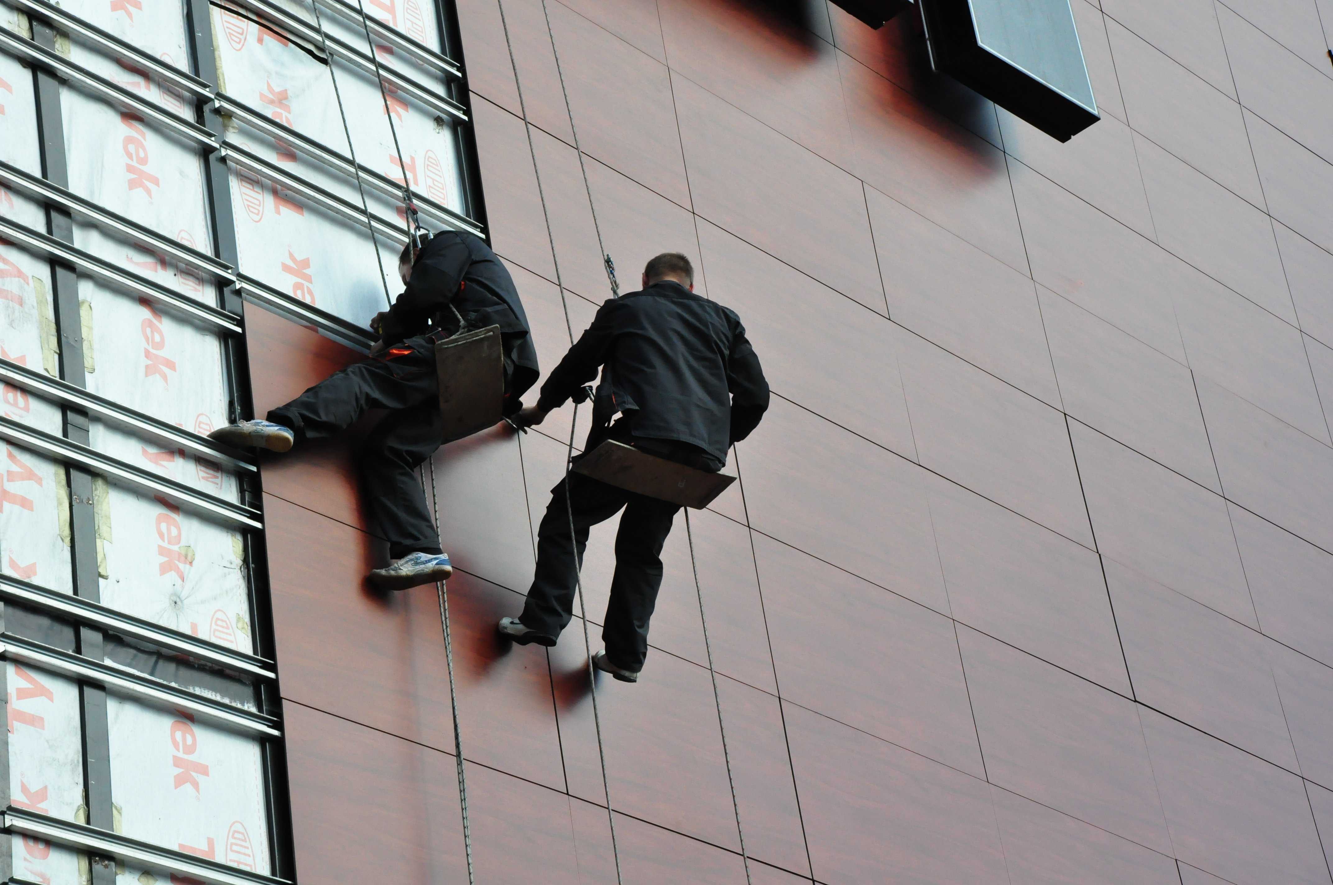 - Étant donné que les panneaux composites sont plus souvent utilisés pour faire face aux bâtiments publics et administratifs, dont les façades sont grandes, avant de commencer les travaux, elles sont divisées en poignées verticales, d'une superficie d'environ 4 m2. En règle générale, une équipe d'installateurs qui se déplacent le long des poignées séquentiellement, chacun effectuant ses propres opérations technologiques.