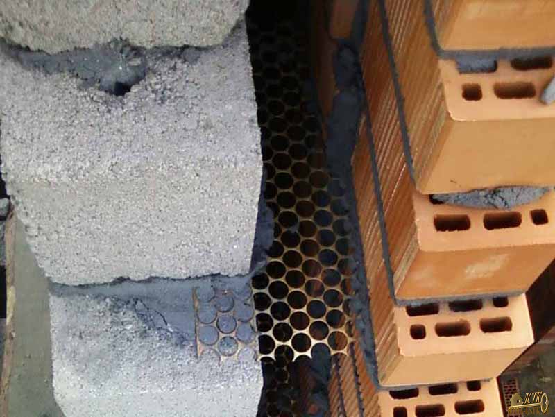 - Une option est l'ancrage en maille d'acier. Il est principalement produit lors de la construction de murs à partir de différents types de blocs: céramique, argile expansée, alvéolaire.