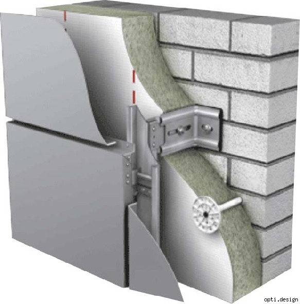 - Certains types de façades ventilées ne prévoient pas l'utilisation d'une couche isolante - cette fonction est réalisée par des éléments de revêtement. Cela dépend souvent de la zone climatique dans laquelle le bâtiment est exploité.