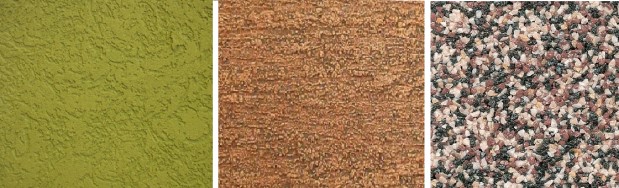 Les enduits structuraux, tels que le «scarabée d'écorce» ou le «galet», ainsi que les mélanges de texture terrazitique, utilisant des charges sous forme de copeaux de marbre ou de mica, sont très populaires. isolation.
