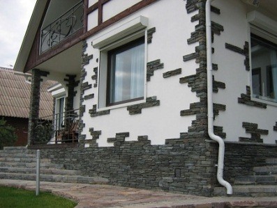 Attention: La finition de la façade de la maison avec trois types de pierre décorative pour le sous-sol, pour les ouvertures et les coins, pour les murs contribuera à rendre la maison originale et présentable.