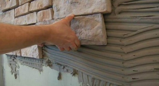 - La deuxième rangée doit également être posée à la jonction du mur et de l'arche, mais la pierre doit dépasser au-delà du joint jusqu'à l'épaisseur du carreau. Pour cette raison, l'angle sera superposé et gagnera donc une plus grande force.