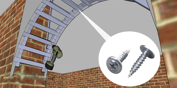 Pointe. Comme matériau pour le cadre, il est préférable d'utiliser des lattes en bois, qui sont fixées autour du périmètre de la voûte des deux côtés à l'aide de mousse de montage.