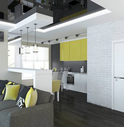 Pour créer une magnifique été, ambiance chaleureuse et ensoleillée, cette technique vous aidera à: décorer les murs de couleur framboise, y ajouter des nuances de citron et rendre les armoires grises. Cette combinaison transmettra parfaitement le sentiment de la période la plus chaude de l'année.