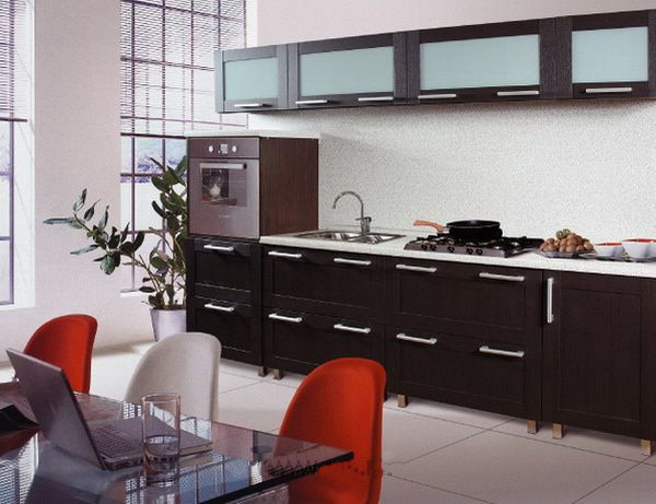 Les teintes foncées ne sont pas recommandées. Ils affectent négativement une personne. De plus, avec de telles couleurs, il est problématique de concevoir une petite cuisine: elles seront contraignantes. Si vous voulez vraiment des murs sombres, n'oubliez pas de les diluer avec des motifs clairs ou des accessoires.
