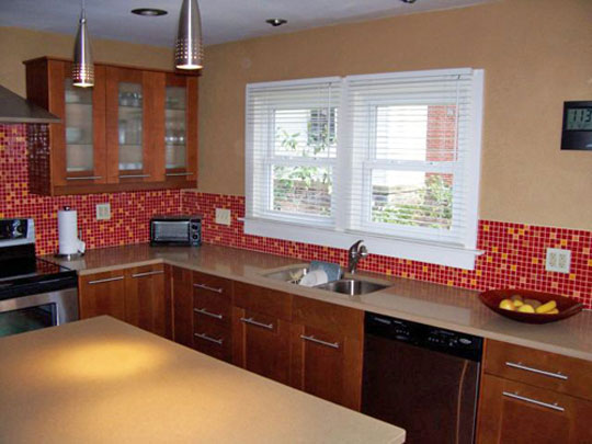 La finition du tablier de cuisine avec des mosaïques semble très intéressante et originale. Les petits carreaux multicolores peuvent créer un intérieur original et insolite.