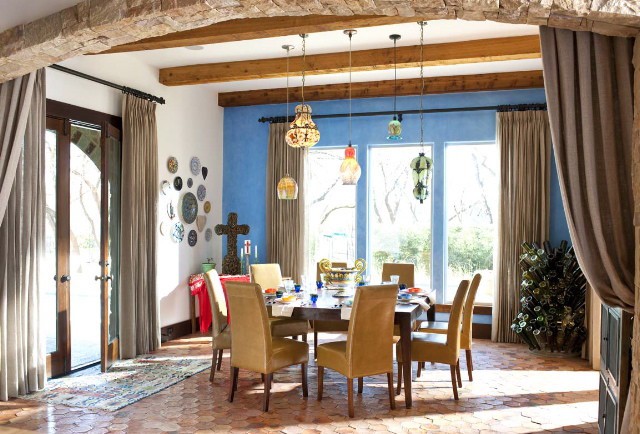 - Parfois, vous ne devriez pas réfléchir sérieusement aux couleurs des matériaux de finition, il est préférable de bien réfléchir à tous les détails et accessoires de l'intérieur. Stores élégants en harmonie avec la sellerie, fenêtres avec rideaux complètement différents, un abat-jour intéressant.