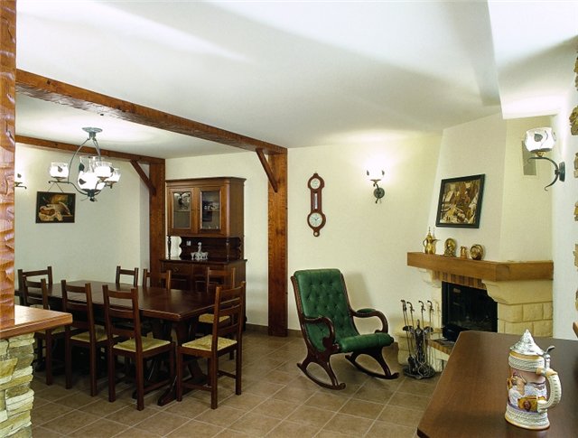 Ensuite, vous pouvez laisser le plafond de base en bois comme ornement, ramasser un menuisier et des meubles en bois.
