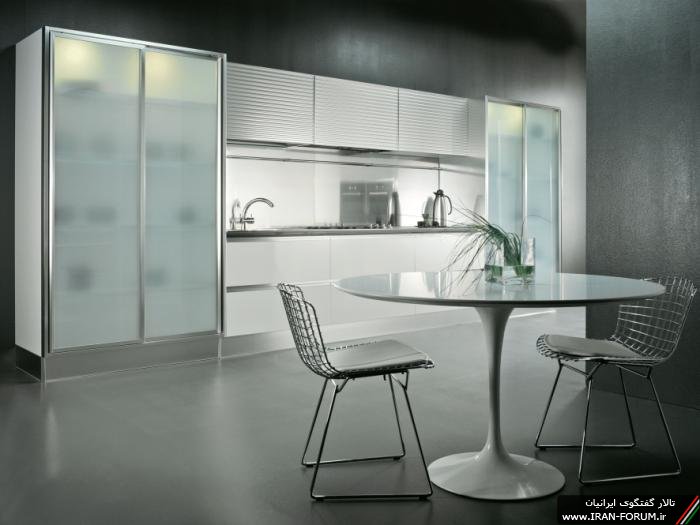 - Dans ce style, vous pouvez même faire une petite cuisine, il est important de ne pas utiliser de couleurs sombres, de finitions massives et de sculptures dans ce cas. Le verre et les miroirs utilisés pour décorer les plafonds et les meubles résoudront le problème de l'extension de l'espace aussi bien que possible.