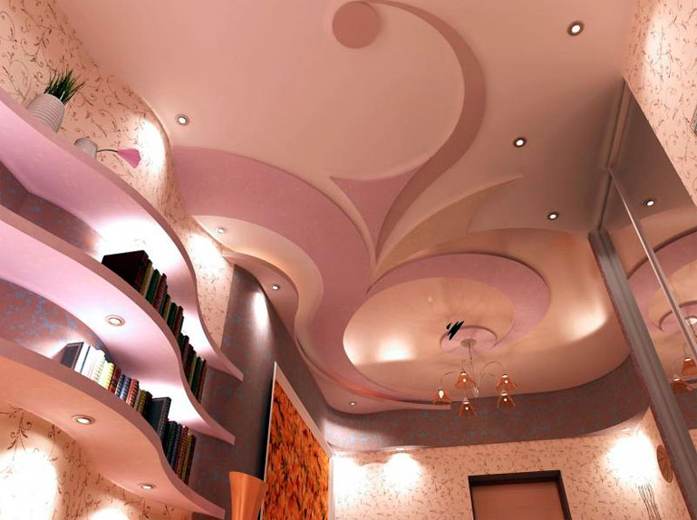 Les matériaux pour faire face au plafond à l'aide de plâtre décoratif peuvent être variés. À ce jour, le plâtre vénitien est devenu très demandé, avec une large gamme de nuances et de designs.