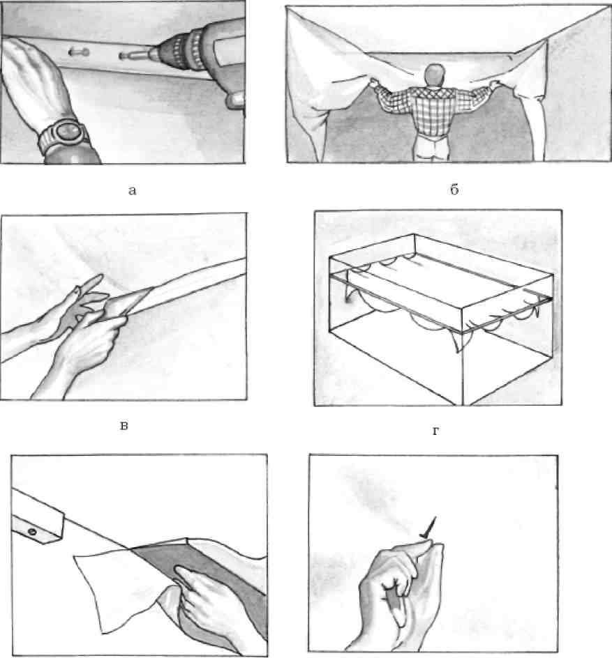 Pour installer le tissu, vous aurez besoin d'un ensemble d'outils similaire, uniquement sans utiliser de pistolet thermique.