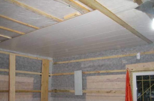 Le revêtement du plafond avec des panneaux en PVC s'effectue de la même manière que l'installation des panneaux MDV. En surface, vous devez également fabriquer une caisse et le plus souvent pour le plastique, elle est constituée de planches de bois.