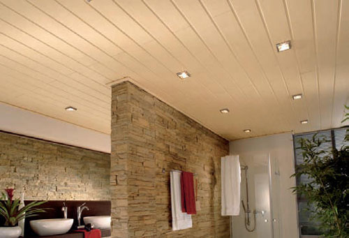 - Le revêtement du plafond avec des panneaux en pvc peut être réalisé à l'aide de dispositifs d'éclairage décoratifs, dont le câblage électrique est posé après la fabrication du lattage.