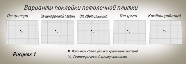 Vient ensuite le remplissage progressif du plafond avec des tuiles symétriquement. - Le plafond ne convient pas à un nombre entier de tuiles. Cette situation est plus courante. Et ici, vous devez bricoler plus longtemps, car la doublure du plafond commence par le centre.