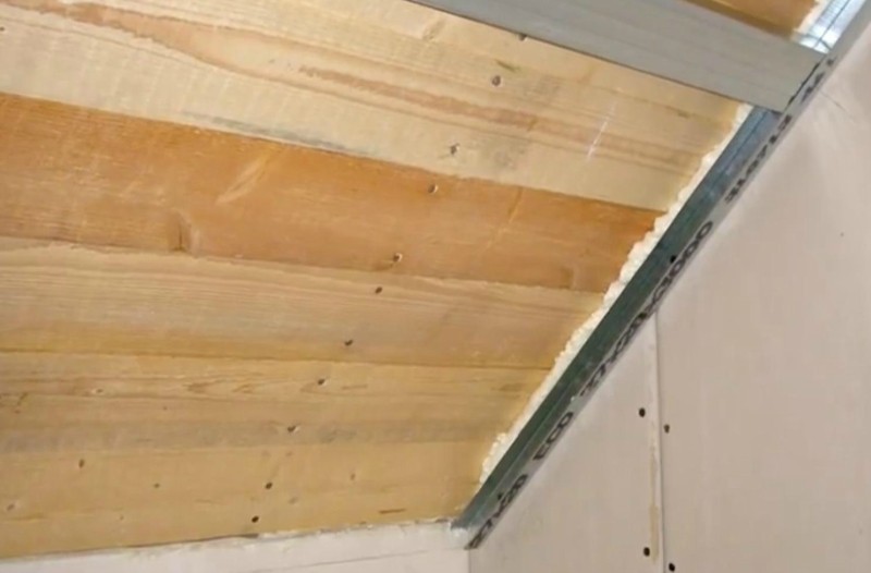 - Dans les endroits où le plafond passe de la partie inclinée à l'horizontale, il est nécessaire d'installer un autre profilé de plafond.
