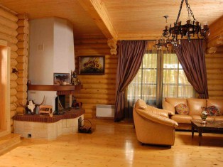 Très cher option de finition de plafond dans une maison en bois rond sera l'utilisation de panneaux en bois naturel. Avec un tel plafond, votre maison aura un look unique.