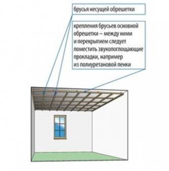 Pour installer un tel plafond, il est nécessaire de monter un cadre suspendu, comme indiqué sur la figure.Les matériaux de finition sont fixés à ce cadre.