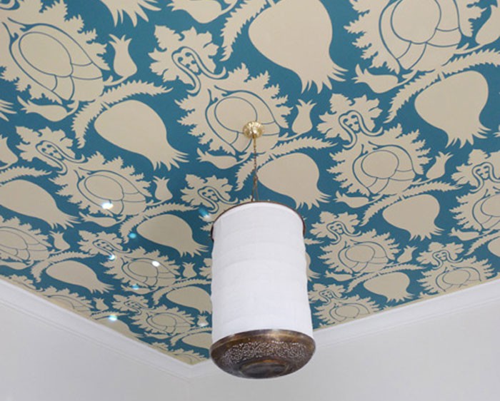 Les plafonds en plaques de plâtre peuvent également être collés avec du papier peint: papier peint ordinaire, papier et non tissé pour la peinture. Pour décoration de papier peint il vous suffit de déterminer la quantité de matériel et d'acheter des papiers peints spéciaux et de la colle pour eux.