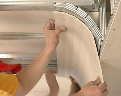 Pour référence. Le séchage du plafond avec des plaques de plâtre vous donne la possibilité de créer absolument n'importe quelle forme et taille du plafond dans la pièce.