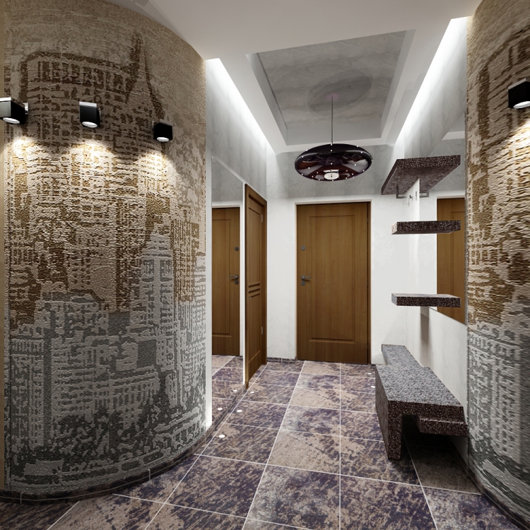 | Pierre artificielle ou naturelle | La couleur des murs d'un petit couloir décoré de pierre artificielle ou naturelle dépend non seulement de la taille et de la superficie de cette pièce, mais également du style, du design et de la décoration supplémentaire. Pour les petits couloirs, il est nécessaire d'utiliser de petites pierres aux contours lisses et gracieux.La finition des grands couloirs est plus diversifiée, ce qui permet de combiner non seulement des éléments de tailles différentes, mais aussi des textures, des matériaux. |