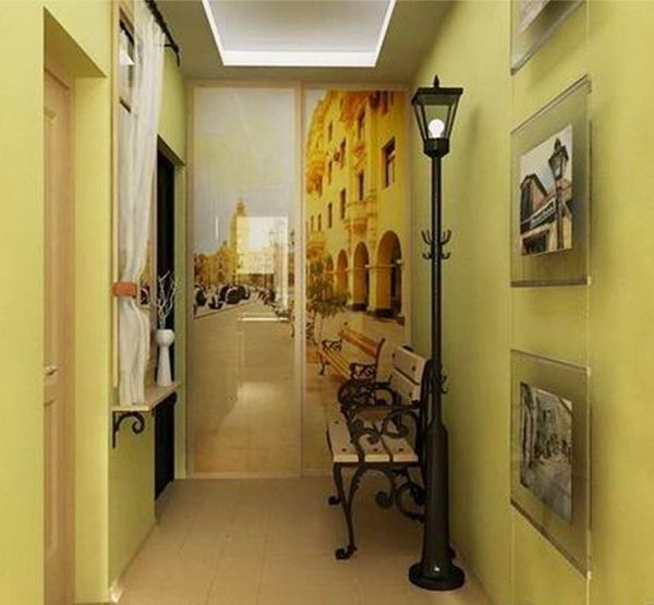 Astuce: si vous souhaitez augmenter visuellement l'espace du couloir, peignez ou garnissez les parois latérales avec des nuances plus claires, abandonnez les niches encombrantes, les meubles encombrants et les détails.