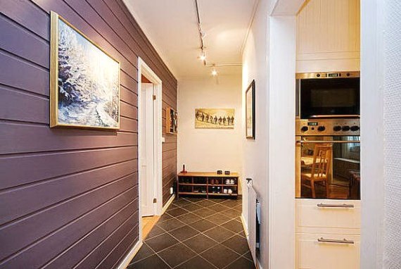 | Garniture | Les murs d'un couloir étroit peuvent également être garnis de matériaux coûteux, respectueux de l'environnement, polyvalents et sûrs pour la santé, comme les panneaux muraux (voir.Revêtement intérieur: la bonne exécution des travaux) Pour le revêtement mural dans de petites zones - ce matériau ne coûtera pas trop cher. La décoration intérieure des éléments individuels et des niches est possible. Doublure pour les petits couloirs, principalement utilisée dans les tons marron clair et sable Pour les grands, au contraire: en marron foncé et chocolat. Les nuances claires peuvent agrandir et agrandir visuellement la pièce. |