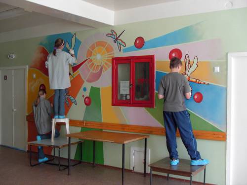 En utilisant de la peinture dans le couloir, nous pouvons combiner différentes couleurs et nuances et, ayant la capacité, nous pouvons décorer les murs avec des motifs lumineux. La peinture est souvent utilisée pour décorer les murs des couloirs de la maternelle, car elle est assez résistante aux dommages et ces murs sont faciles à laver, en respectant les normes d'hygiène.