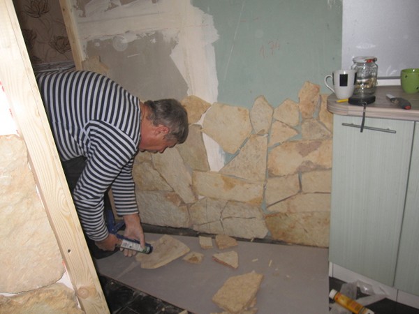 - Après avoir posé les carreaux de pierre, laissez-les sécher au moins une journée. La composition de la truelle pour traiter les coutures résultantes ne peut être effectuée qu'après cela.