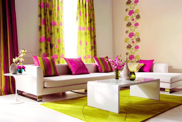 - Si l'image sur le mur copie les couleurs d'un ensemble de rideaux, les taies d'oreiller sur les coussins du canapé sont cousues avec le même tissu que les rideaux de la deuxième fenêtre.