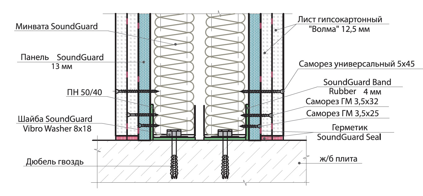 Si vous avez besoin de l'isolation acoustique la plus élevée possible (par exemple, entre une chambre et un salon dans un appartement de deux pièces), il ne suffit pas de remplir le cadre d'isolation: vous devez découpler acoustiquement le revêtement mural des deux côtés. Le fait est que le cadre transfère parfaitement les vibrations basse fréquence d'un côté de la cloison à l'autre.