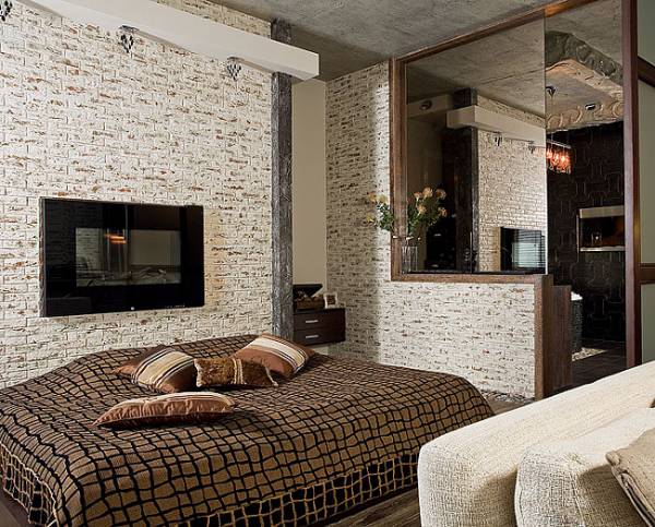 La chose est de savoir exactement comment la brique est décorée et comment la décoration intérieure est réalisée. - Et même si la brique elle-même n'a pas été utilisée dans la décoration, elle a été remplacée avec succès par des panneaux stylisés et des revêtements muraux roulés. Ainsi, un mur de briques est terminé.