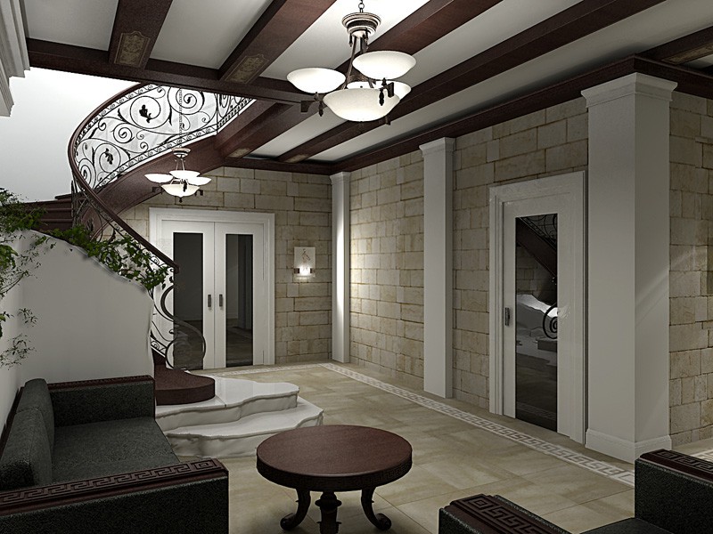 Ici, par exemple, l'intérieur de la maison, réalisé dans le style antique.
