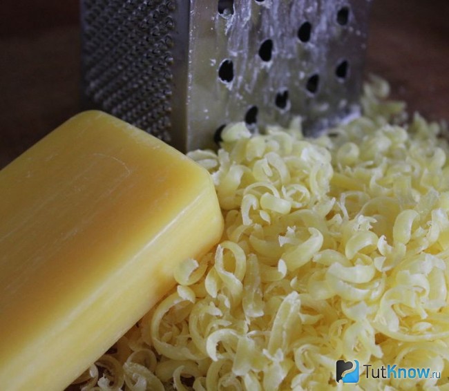 - Le savon est écrasé avec une râpe de cuisine, comme sur la photo.