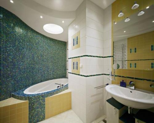 Vous pouvez maintenant procéder à la décoration décorative du plafond. Dans la salle de bain, les plafonds sont principalement peints avec un matériau résistant à l'humidité, en tout cas, la pièce est transformée.