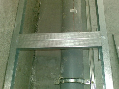Avant de fixer le matériau de base, il est nécessaire d'installer un profil. La caisse se trouve à partir de profils métalliques, beaucoup préfèrent utiliser une structure en bois pour économiser, bien que pour la salle de bain, ce ne soit pas la meilleure option.