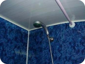 Le plafond de la salle de bain peut également être en carreaux de céramique ou en panneaux de plastique, qui se distinguent par leur résistance à l'humidité et leur caractère pratique.. Ils sont fixés dans des guides spéciaux et sont reliés entre eux par des verrous fournis à l'extrémité.
