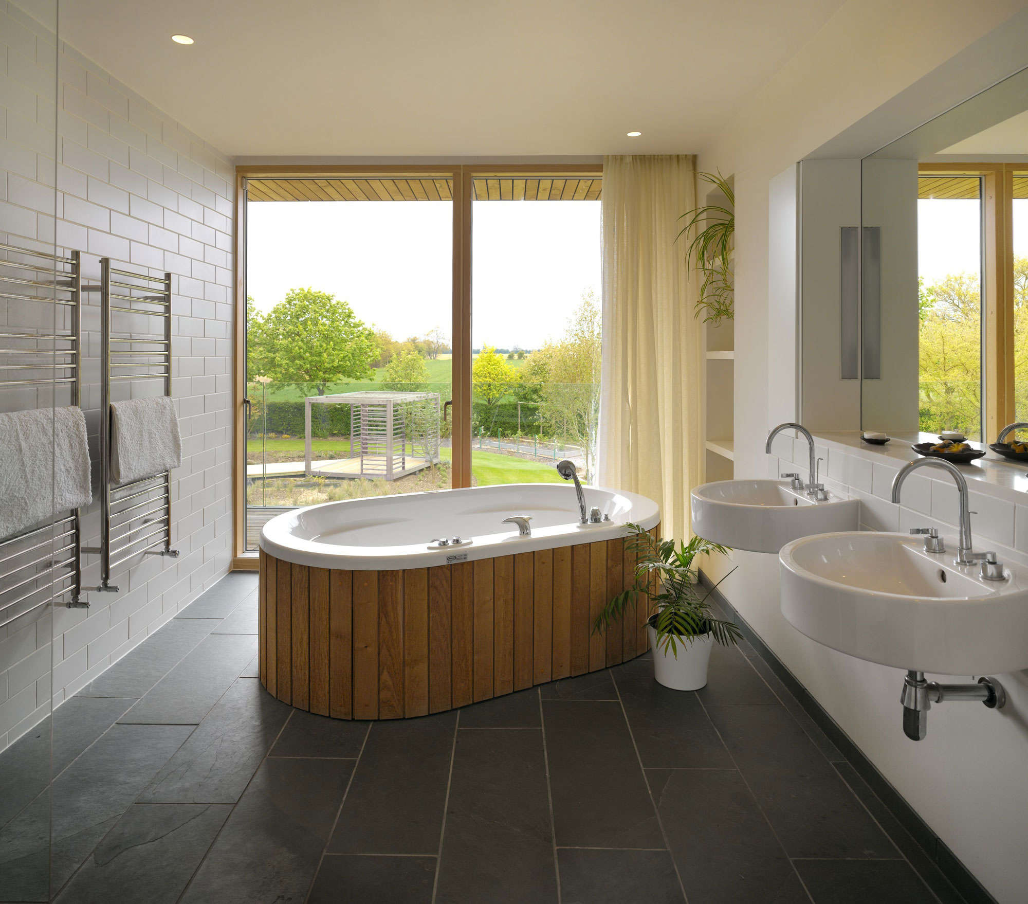 Dans les maisons privées, où la superficie des salles de bain n'est pas inférieure à celle de la cuisine ou de la chambre, et même souvent avec des fenêtres, le problème de l'humidité élevée n'est pas aussi aigu que dans les appartements. Si les structures en bois sont correctement traitées, la vapeur ne les endommagera pas - surtout si la pièce peut être ventilée.